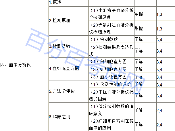 | 4.自动化血型分析仪 | (1)原理 | 了解 | 3,4 | |